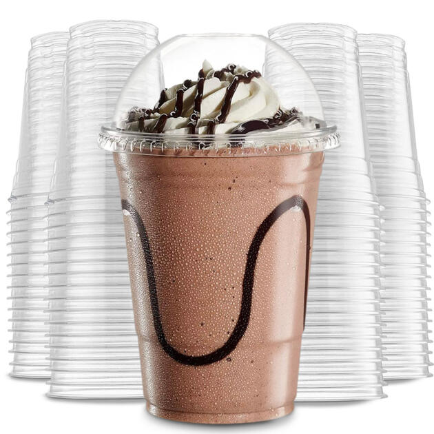 Set de Vasos de plástico con tapa domo. Incluye: 50 vasos y 50 tapas
