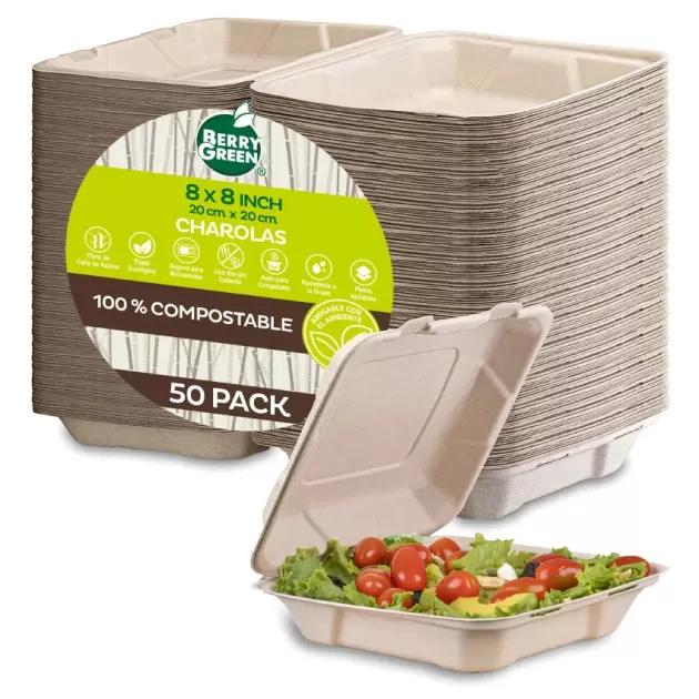 Platos compostables rectangulares de 8 in.