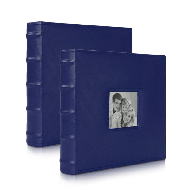 Dos álbumes encuadernados y cosidos a mano color azul.