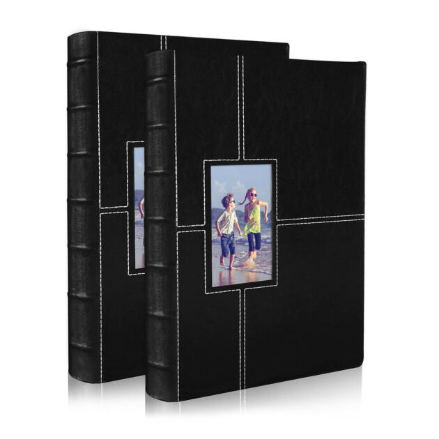 Dos álbumes encuadernados y cosidos a mano color negro.